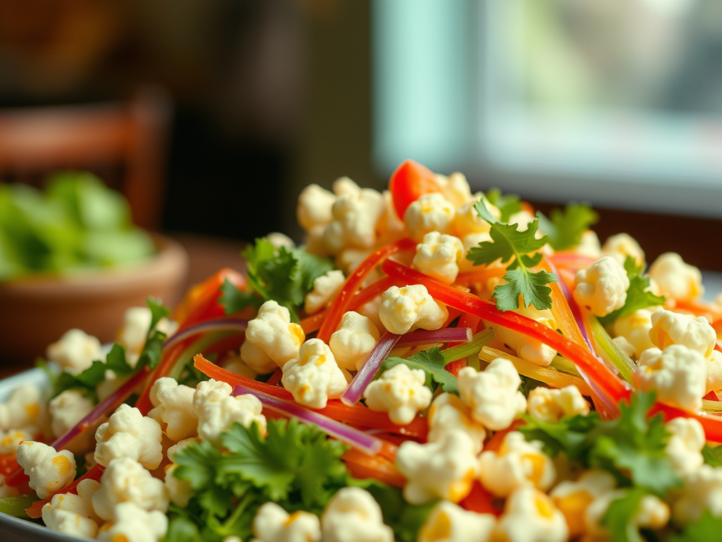 What makes it memorable is how unexpectedly balanced it is. The dressing softens the popcorn just enough to cling without turning soggy, the vegetables keep everything fresh, and the whole bowl feels like a playful twist on a classic potluck salad. It’s comfort food with personality, and it tends to disappear faster than anyone expects.