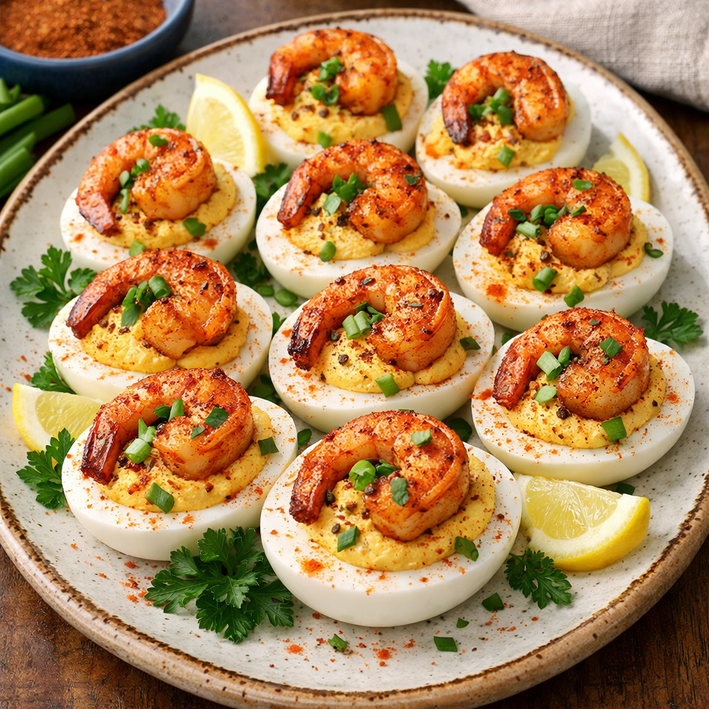 Discover the delightful world of Cajun Shrimp Deviled Eggs, a vibrant and flavorful appetizer that promises to excite your taste buds and brighten your table. These eggs are not just ordinary; they are a feast for the senses, combining the rich, smoky spices of Cajun cuisine with the succulent sweetness of perfectly cooked shrimp. Whether you’re a seafood lover or simply looking to add a splash of color to your appetizer platter, Cajun Shrimp Deviled Eggs are sure to be a hit, offering a perfect balance of spice, creaminess, and visual appeal that will leave everyone craving more.